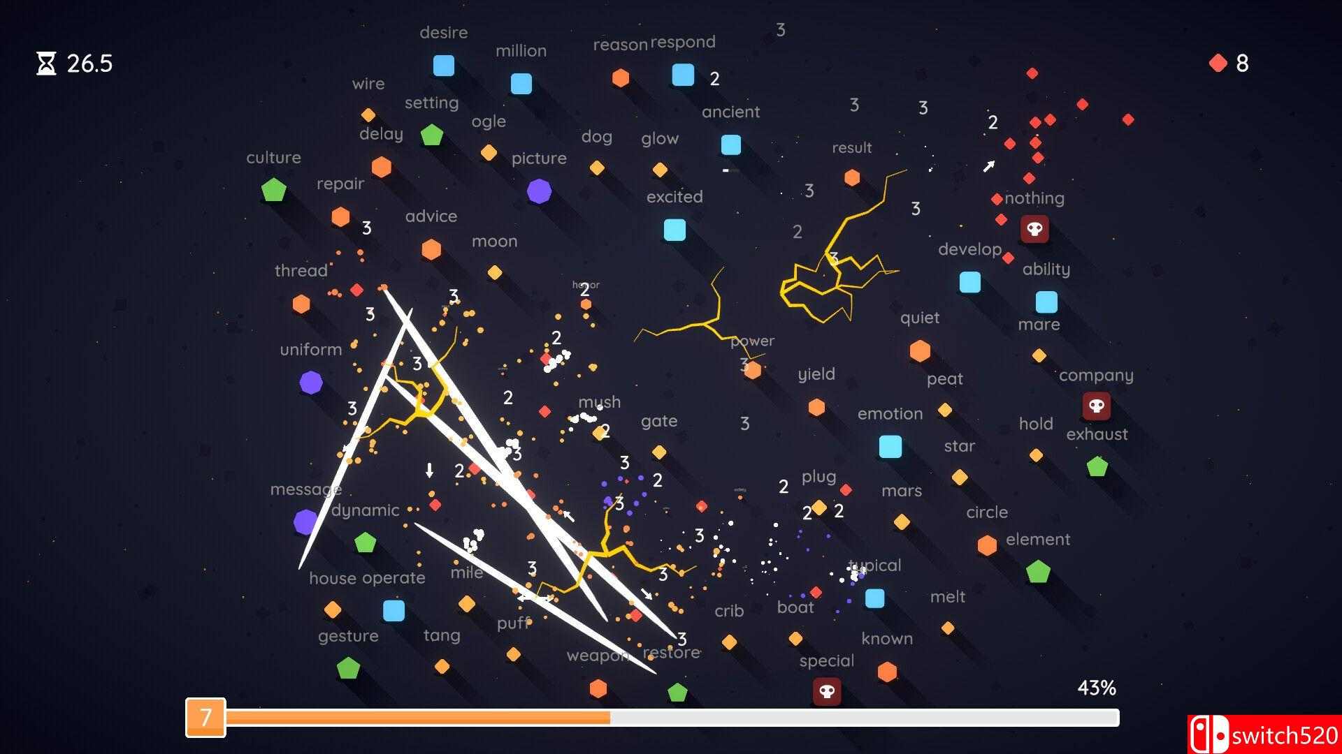《增量打字员》是一款动作冒险类(ACT)游戏,Incretyper是一款增量式打字游戏,你输入的每个单词都能触发强力效果。摧毁图形、解锁升级,见证你的打字力量演变为混乱的连锁反应。switch520