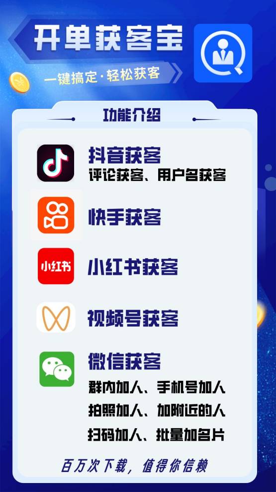 开单获客宝专注于各渠道客源信息采集,适用于销售、业务员、微商、生厂商家、批发商、渠道商等各行各业有线上营销销售需求的人员找客户。